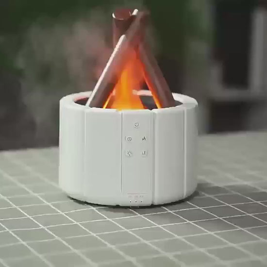 Create a cozy, relaxing atmosphere anywhere with the H9 Bonfire Aroma Diffuser & Ultrasonic Flame Humidifier. Featuring a realistic LED campfire effect, it combines humidifying and aromatherapy functions to enhance your environment. Compact and USB-powered, this diffuser is perfect for bedrooms, offices, or camping trips. Control the lighting and mist easily with the included remote
