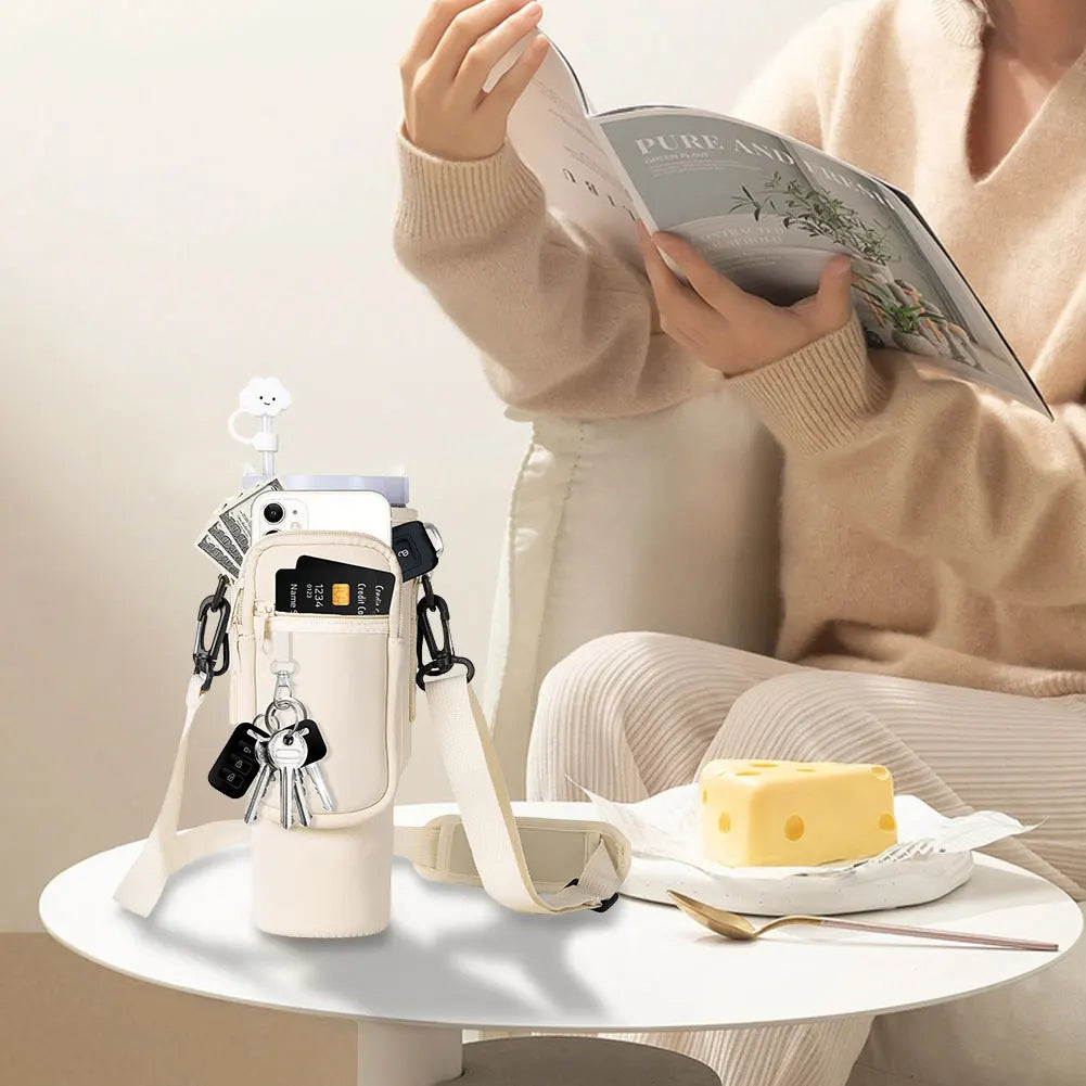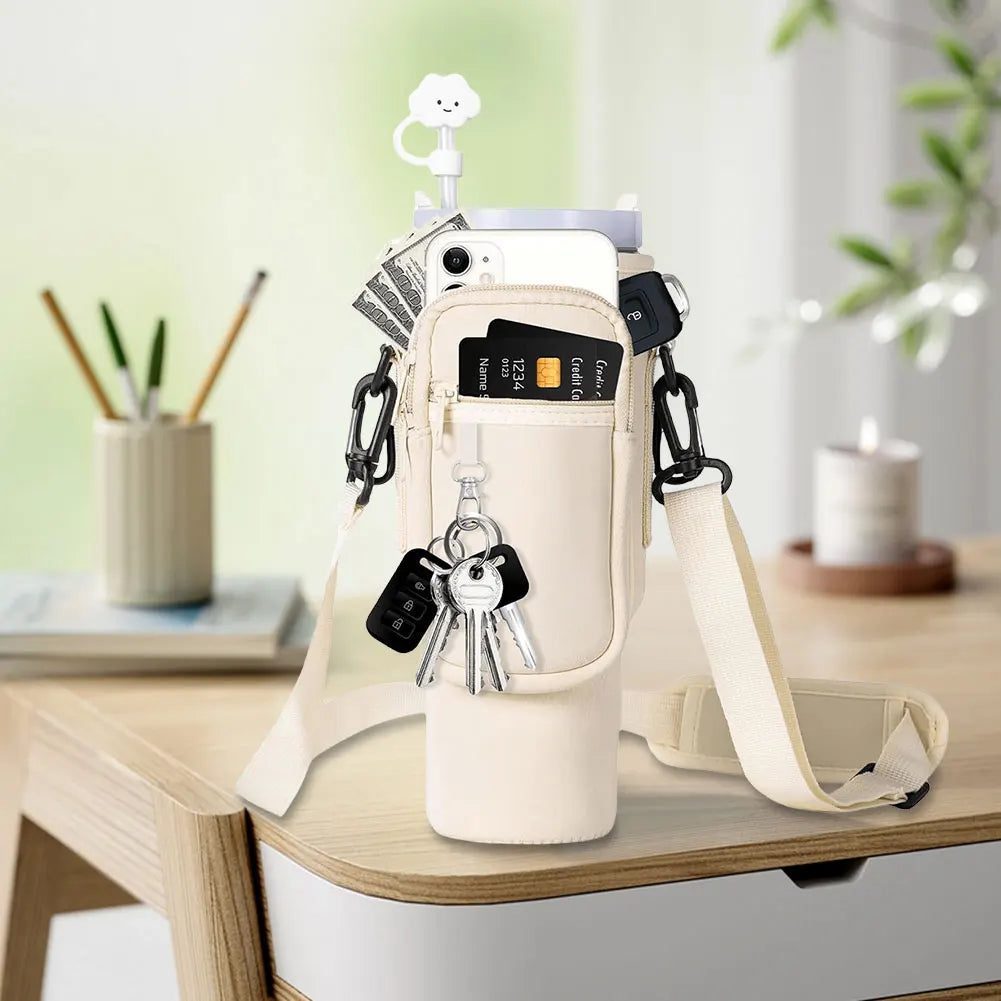 This adorable neoprene water bottle carrier bag is designed to keep your bottle secure, temperature-stable, and easy to carry wherever you go. With its soft pastel colors, adjustable shoulder strap, and convenient zip pocket, it’s perfect for school, office, travel, gym, or daily errands